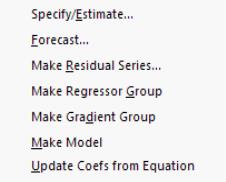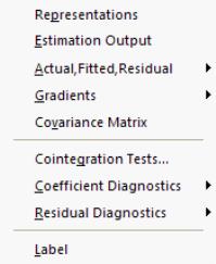 Once you estimate your equation, EViews offers a variety of views and procedures for examining the properties of the equation, testing, forecasting, and generating new data. For the most part, these views and procedures are a subset of those available in other estimation settings such as least squares estimation. (The one new view, for cointegration testing, is described in depth in