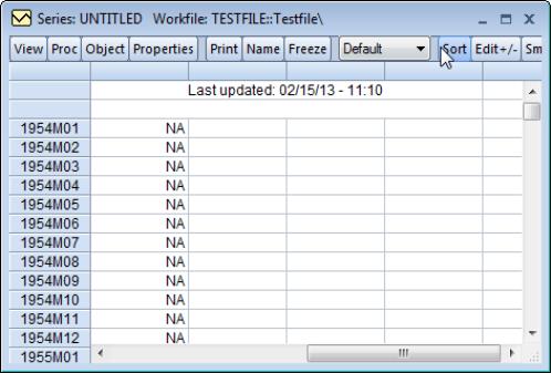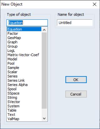 For example, if you select , you will see a dialog box prompting you for additional information. Alternatively, if you click on Series and then select OK, you will see an object window (series window) displaying the spreadsheet view of an UNTITLED series.