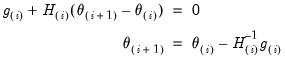 The effect of this modification is to push the parameter estimates in the direction of the gradient vector. The idea is that when we are far from the maximum, the local quadratic approximation to the function may be a poor guide to its overall shape, so we may be better off simply following the gradient. The correction may provide better performance at locations far from the optimum, and allows for computation of the direction vector in cases where the Hessian is near singular.