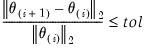 tol is the specified tolerance. However, before taking the norms, each parameter is scaled based on the largest observed norm across iterations of the derivative of the least squares residuals with respect to that parameter. This automatic scaling system makes the convergence criteria more robust to changes in the scale of the data, but does mean that restarting the optimization from the final converged values may cause additional iterations to take place, due to slight changes in the automatic scaling value when started from the new parameter values.