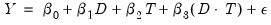 , and T is a dummy variable equal to 1 if the observation is in the treated group. For notational simplicity, we ignore additional exogenous regressors in