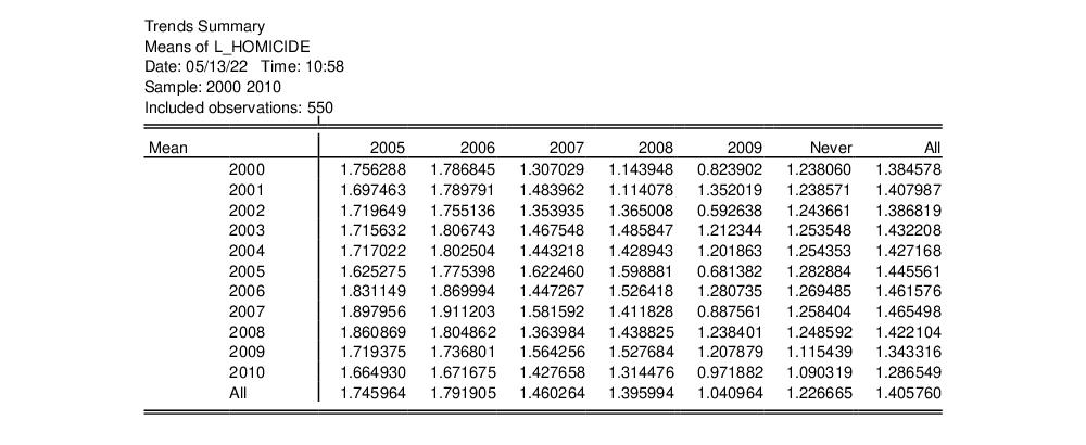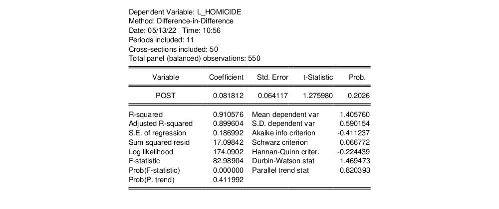Click on to perform the difference-in-difference estimation and display the output: