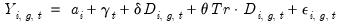 The basic equation output for a DiD estimation is identical to that of least squares estimation, but with the display of only the single treatment coefficient. Also, the test statistic and associated p-value of a test of the parallel trends assumption is displayed with the summary statistics at the bottom of the estimation. This test is a simple Wald-test run on the auxiliary regression: