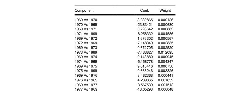 The labeling of the individual components indicates the nature of the group comparison. For example, the “1969 vs. 1970” comparison is an