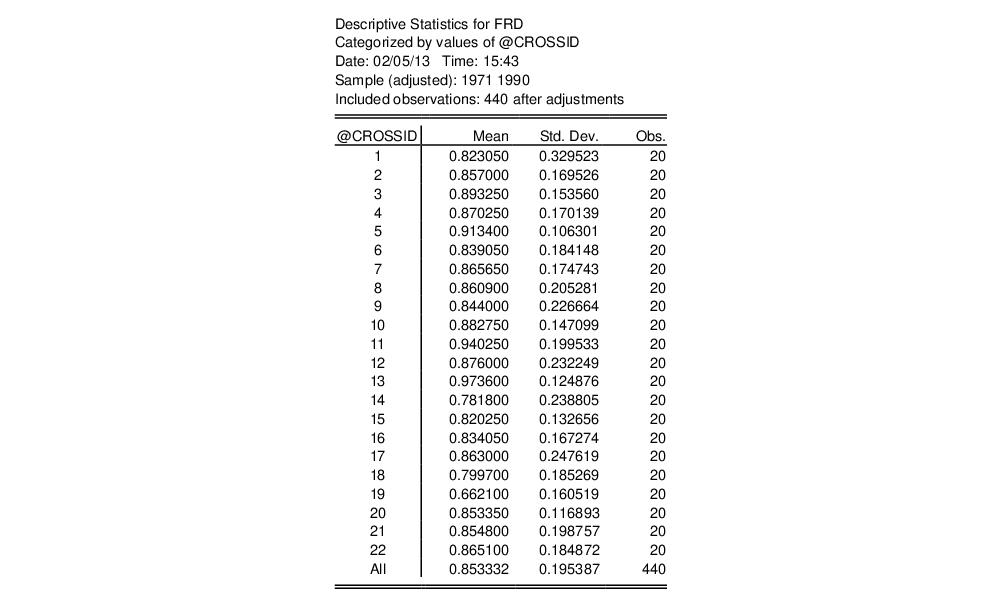 One particularly useful set of non-panel specific tools that may be used for panel analysis are the by-group statistics functions (