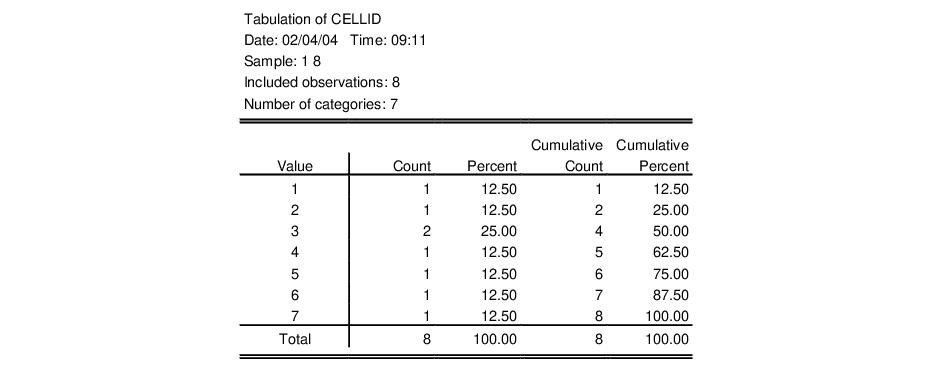 A one-way tabulation of the CELLID series provides you with information about the number of observations with each index value: