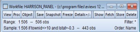 Combined with standard EViews tools, the by-group statistics allow you to perform quite complex calculations with little effort. For example, the panel “within” standard deviation for LSTAT may be computed from the single command: