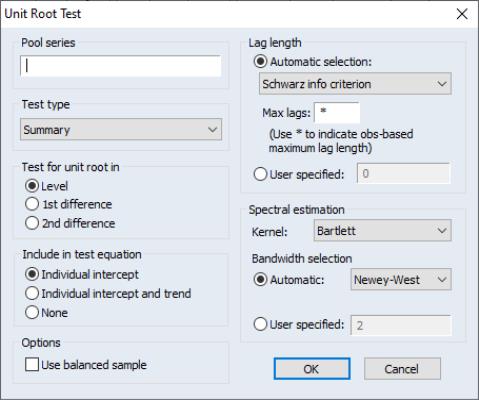 To compute the unit root test, select from the menu of a pool object.