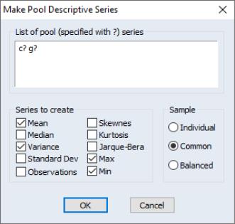 EViews provides convenient built-in features for computing various descriptive statistics for pool series using a pool object. To display the dialog, select from the pool toolbar.