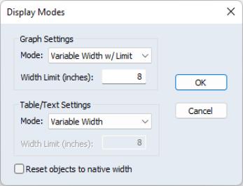• displays graph objects in their native widths so long as they do not exceed the specified limit, otherwise the display size is adjusted accordingly. You may customize the display sizes of individual objects.