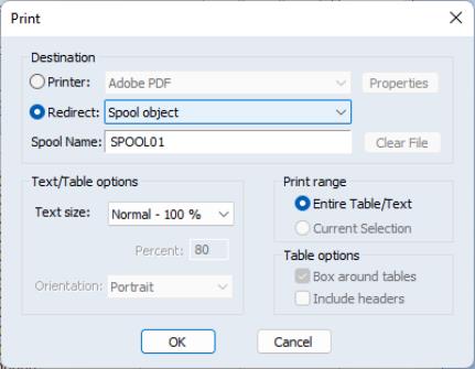 If you wish to send all subsequent print jobs to the spool object, you may use the main dialog or the