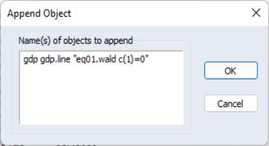 Click on to continue. EViews will add an output object containing the contents of the object window to the spool object.