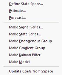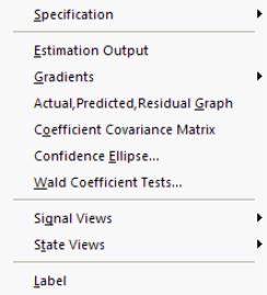 When you click on , EViews displays a sub-menu containing additional view selections. Two of these selections are always available, even if the state space model has not yet been estimated: