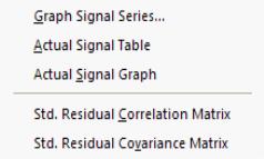 • and display the correlation and covariance matrix of the standardized one-step ahead signal residual,