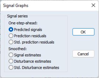 • opens a dialog with choices for the results to be displayed. The dialog allows you to choose between the one-step ahead predicted signals,