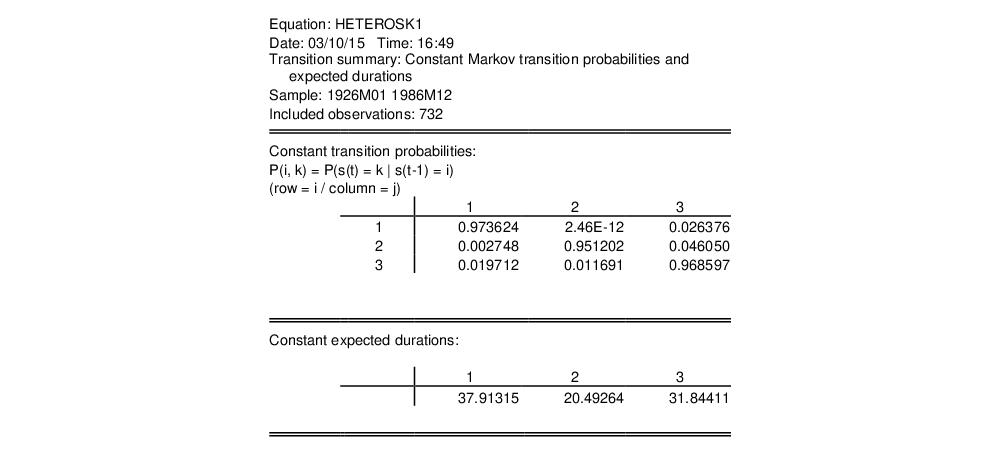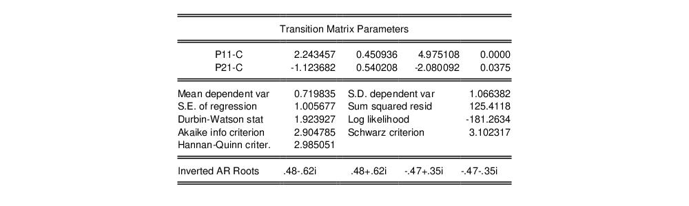 The remaining results show the parameters of the transition matrix and summary statistics for the estimated equation.
