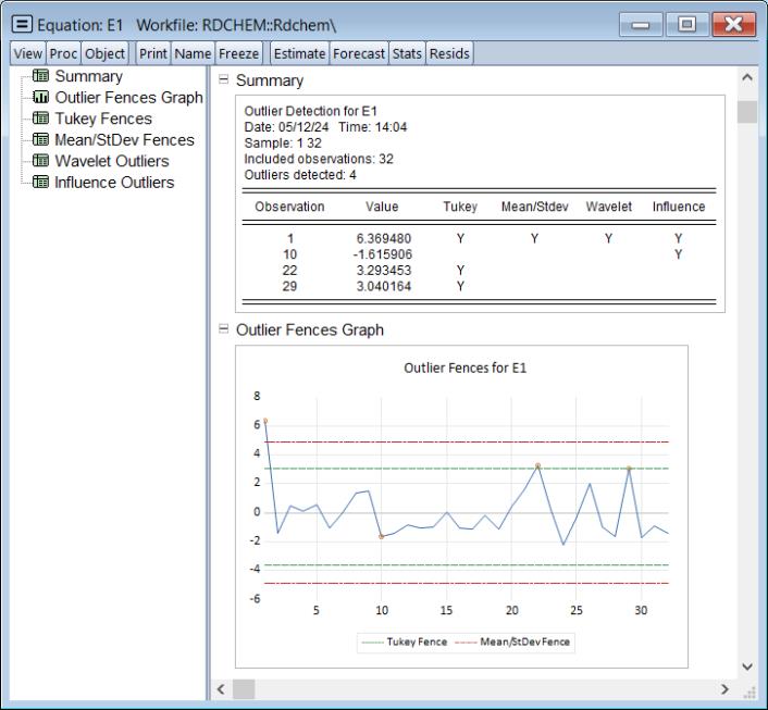 The new equation outlier detection view offers two approaches to identifying outliers in an estimated equation.