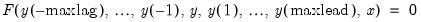 is a vector of all the exogenous variables, and the parentheses follow the usual EViews syntax to indicate leads and lags.
