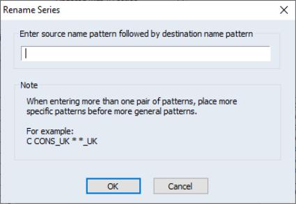 You may use the “*” and “?” wildcards as part of the renaming specification to rename multiple series at once. For example,